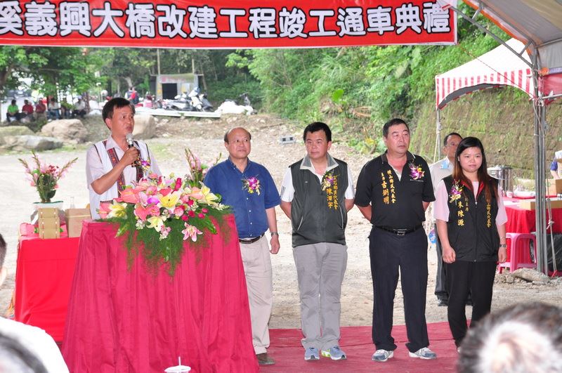邱縣長表示:感謝中央、縣府與議會、公所與代表會等單位大家通力合作,讓義興大橋如期完工通車,改善當地的交通瓶頸,為地方帶來繁榮發展。張議長表示,義興大橋成了尖石地區的新地標,有效的讓產業連結起來,對於工作人員的辛勞,張議長表示由衷的佩服與謝意。